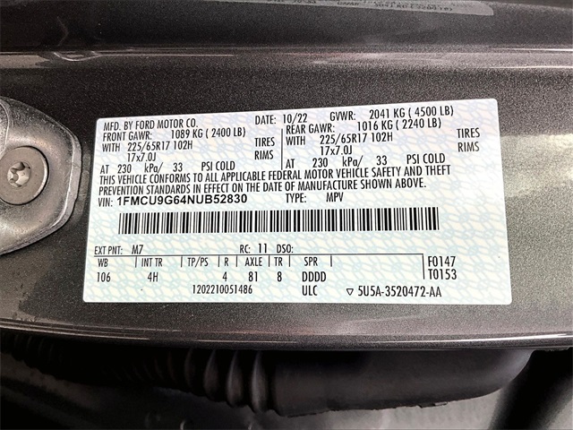 SE | 17,034 milesStock # NL1926A | VIN # 1FMCU9G64NUB52830