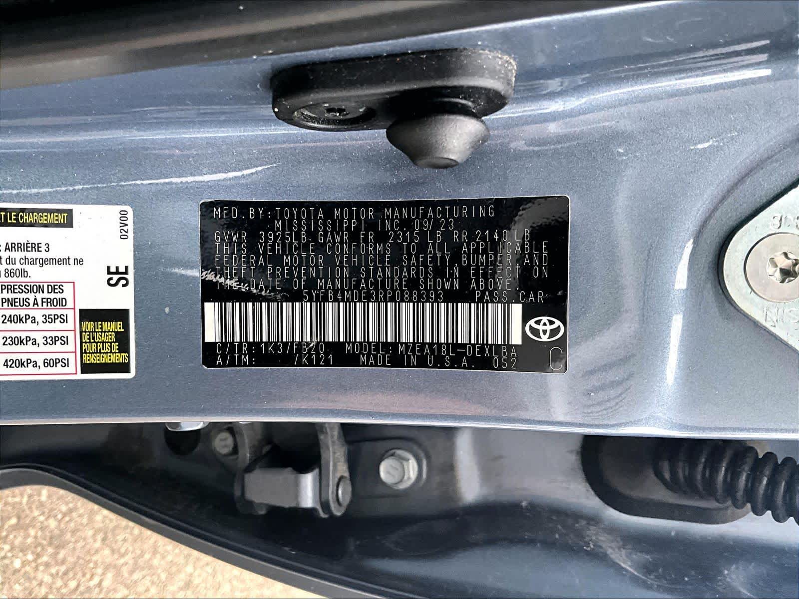 LE | 51,425 milesStock # U0300393 | VIN # 5YFB4MDE3RP088393