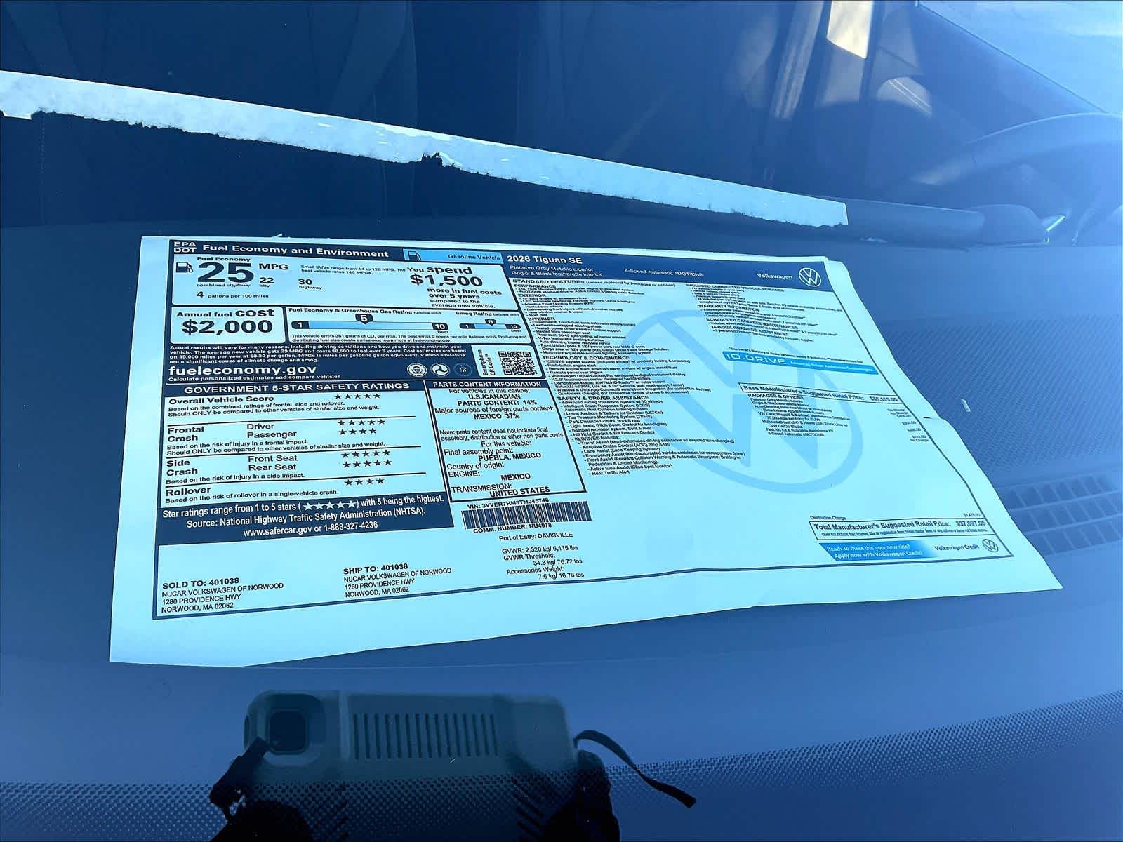 Available atNucar Volkswagen of Norwood1280 Boston Providence HighwayNorwood, MA 02062(781) 590-1643