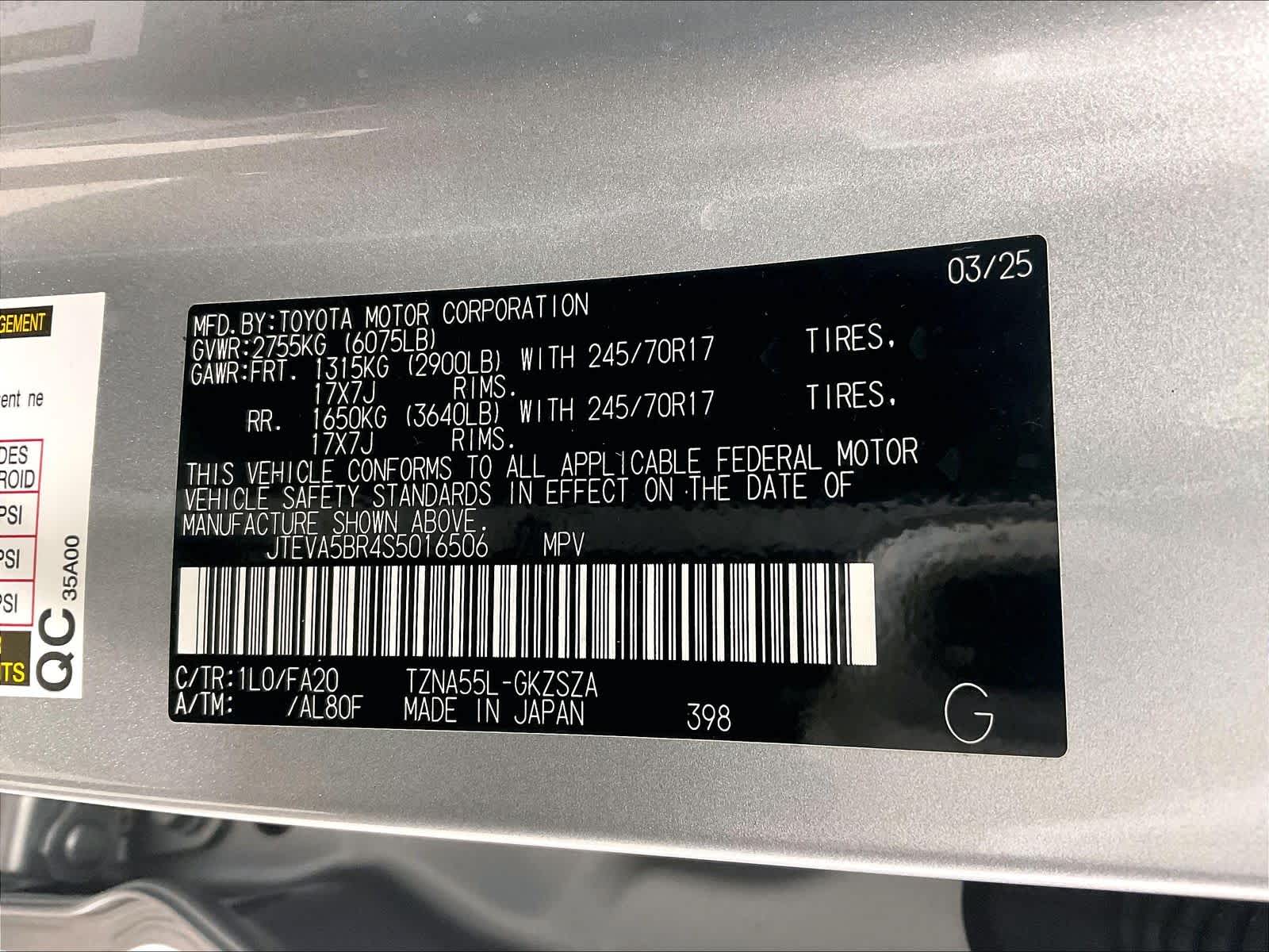 SR5 | 13,755 milesStock # U0300309 | VIN # JTEVA5BR4S5016506