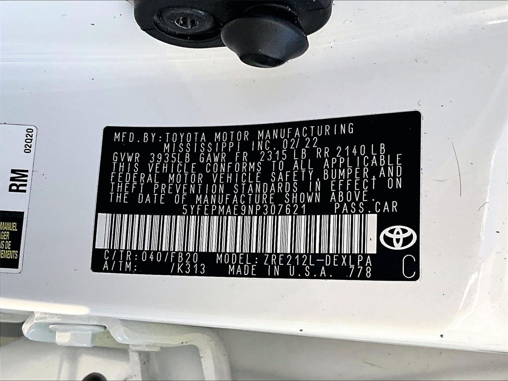 LE | 66,971 milesStock # U2000407A | VIN # 5YFEPMAE9NP307621
