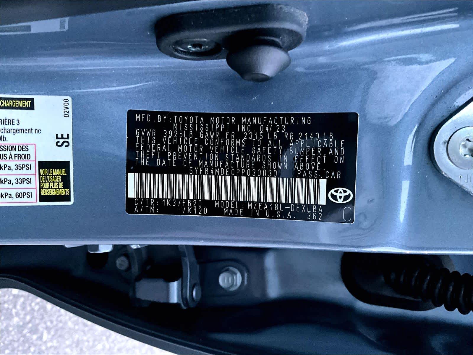 LE | 51,706 milesStock # U0300598 | VIN # 5YFB4MDE0PP030030