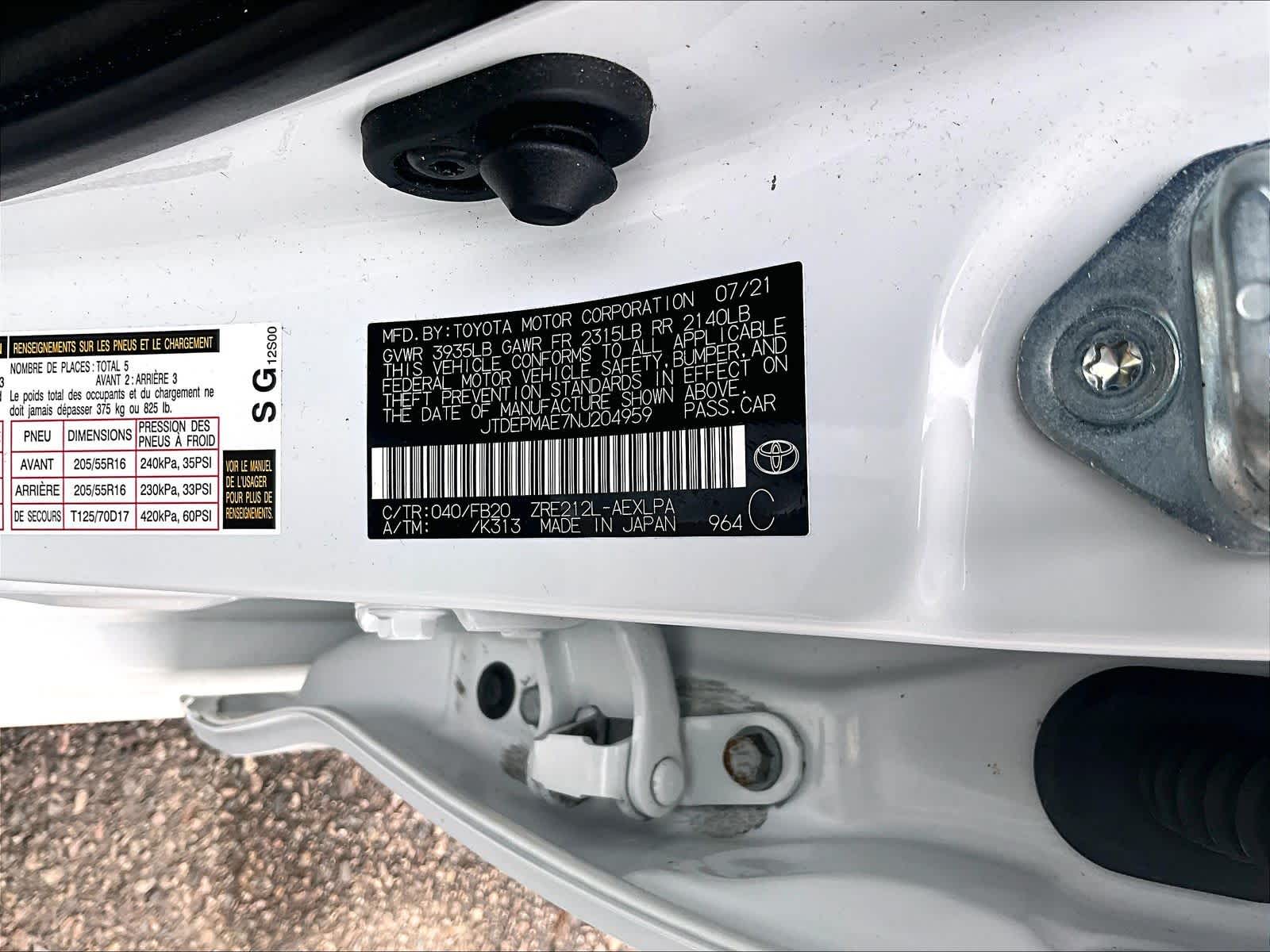 LE | 30,431 milesStock # N0300808A | VIN # JTDEPMAE7NJ204959
