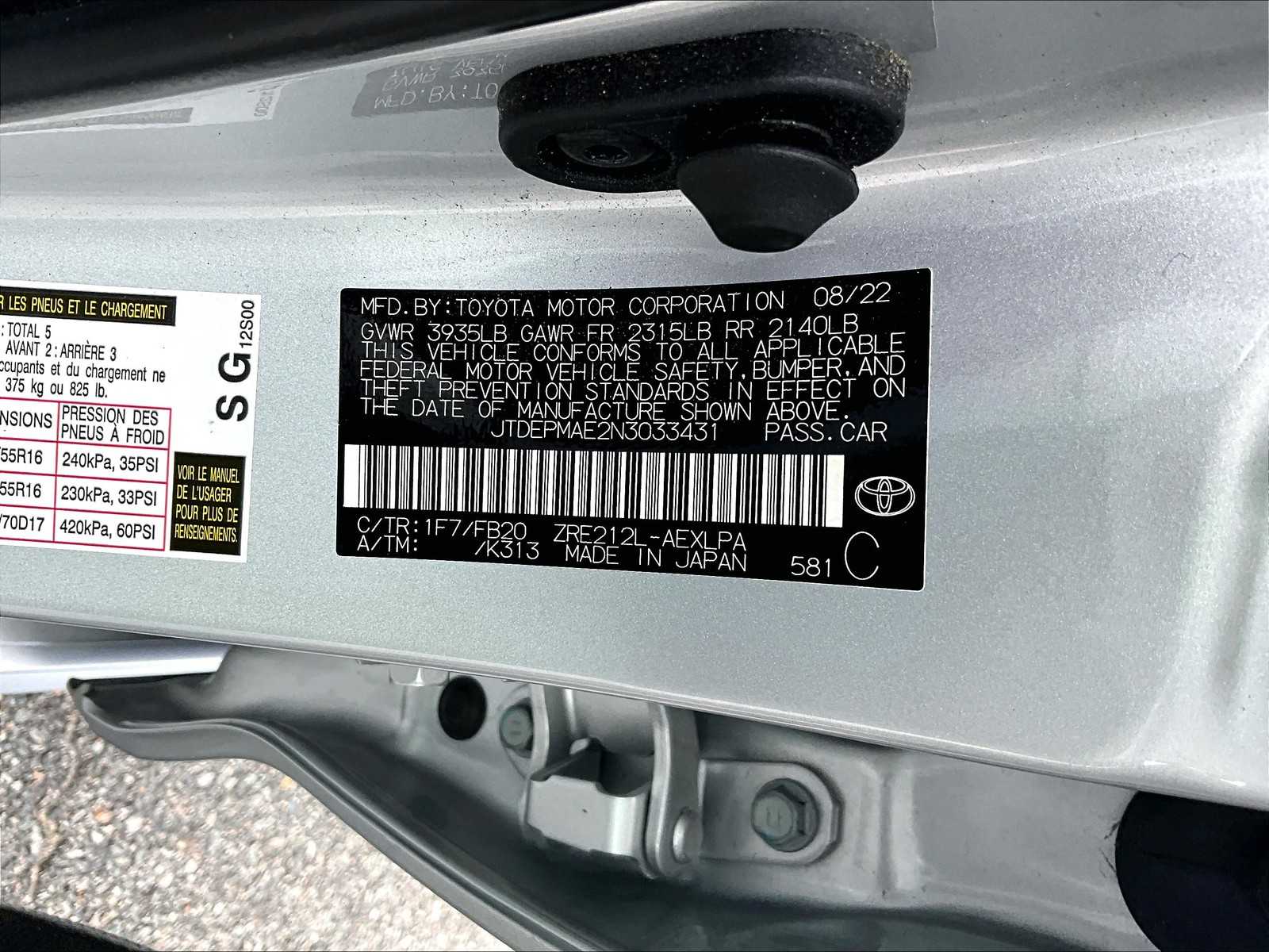 LE | 26,337 milesStock # U0800371A | VIN # JTDEPMAE2N3033431