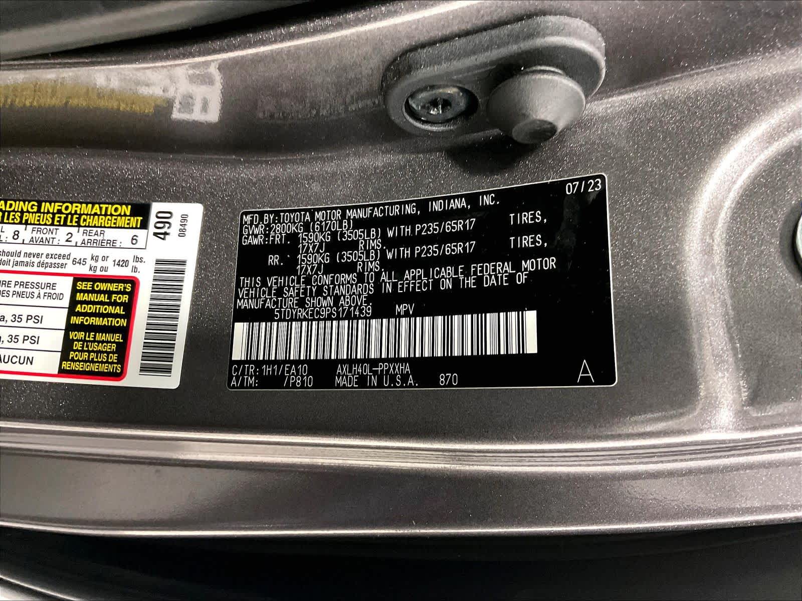XLE | 60,815 milesStock # U0300230 | VIN # 5TDYRKEC9PS171439