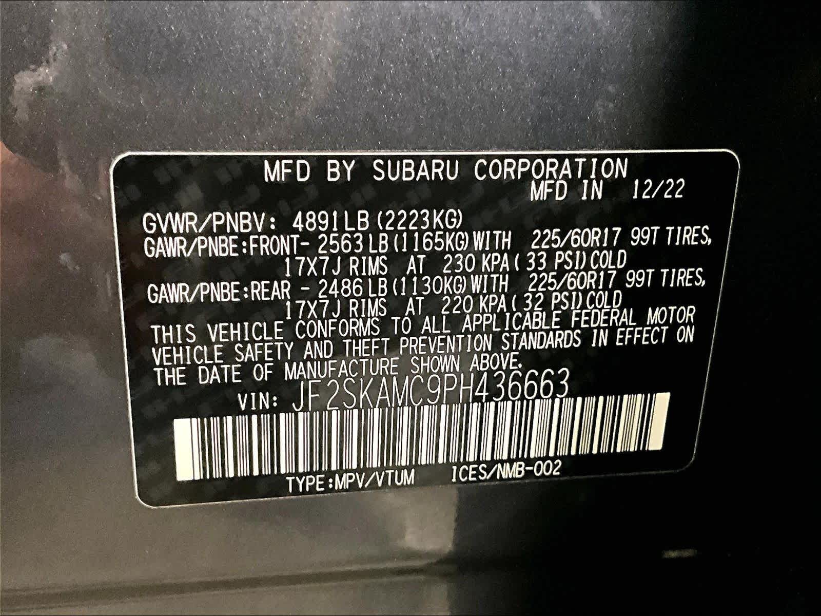Wilderness | 27,440 milesStock # U1200098A | VIN # JF2SKAMC9PH436663