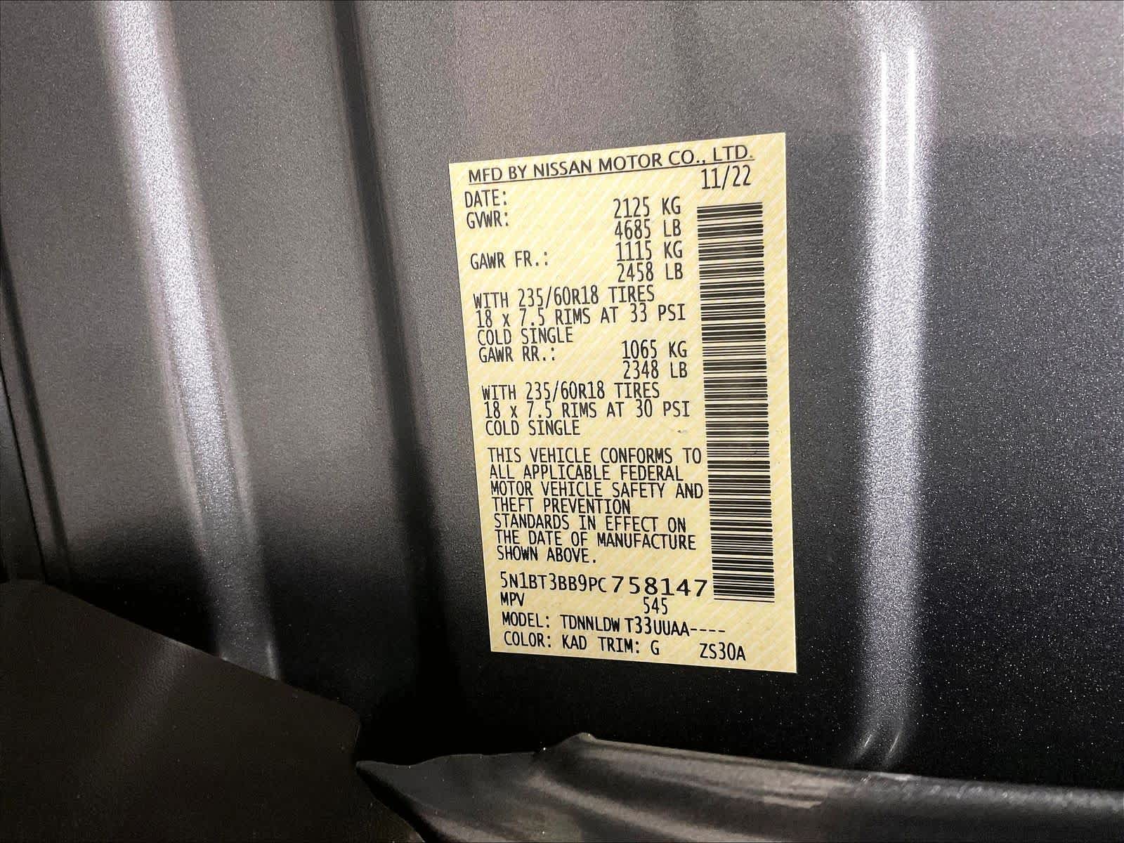 SV | 8,385 milesStock # U1300141 | VIN # 5N1BT3BB9PC758147