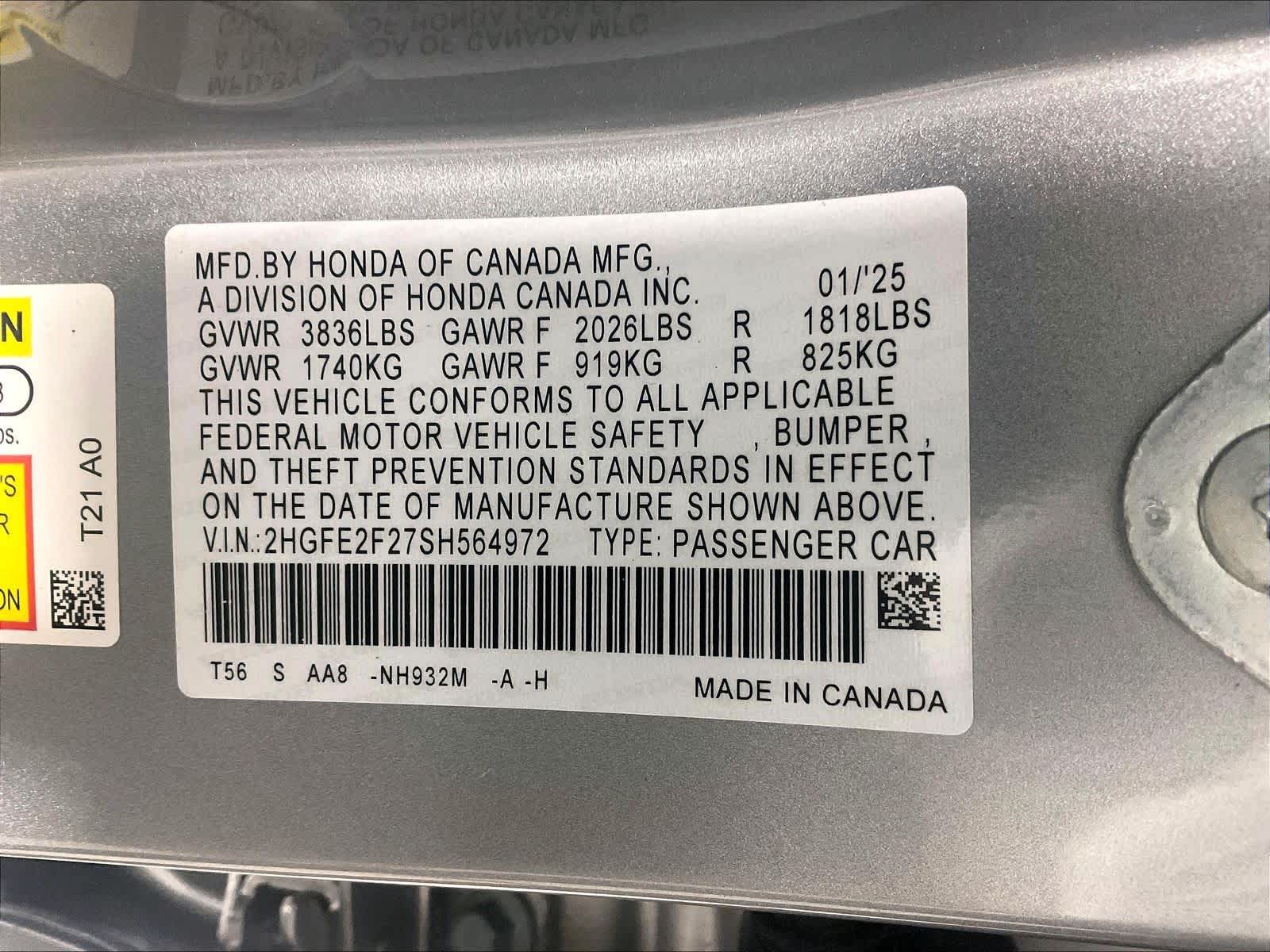 LX | 13,717 milesStock # U0500272 | VIN # 2HGFE2F27SH564972