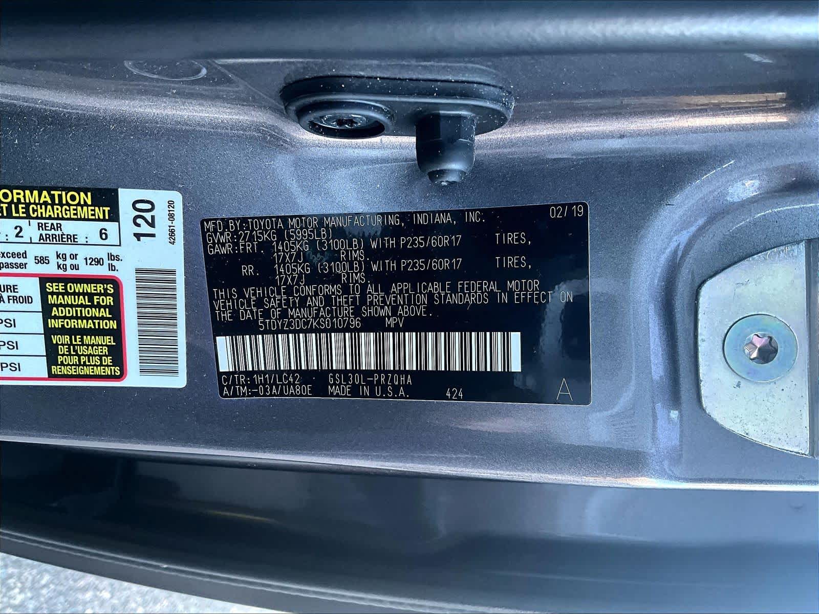 XLE | 100,331 milesStock # U0300367A | VIN # 5TDYZ3DC7KS010796