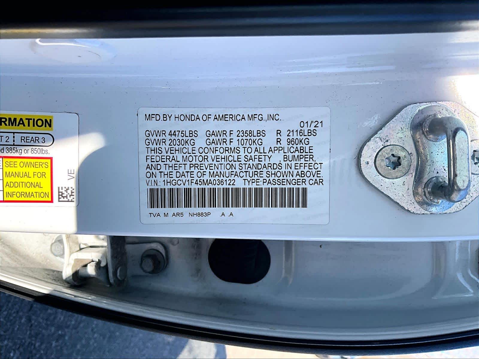 Sport SE | 96,955 milesStock # N0301260A | VIN # 1HGCV1F45MA036122