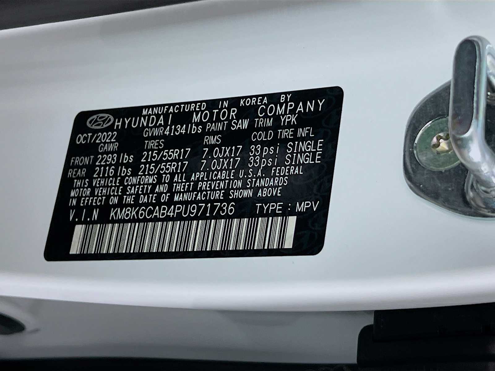SEL | 20,634 milesStock # H6572P | VIN # KM8K6CAB4PU971736