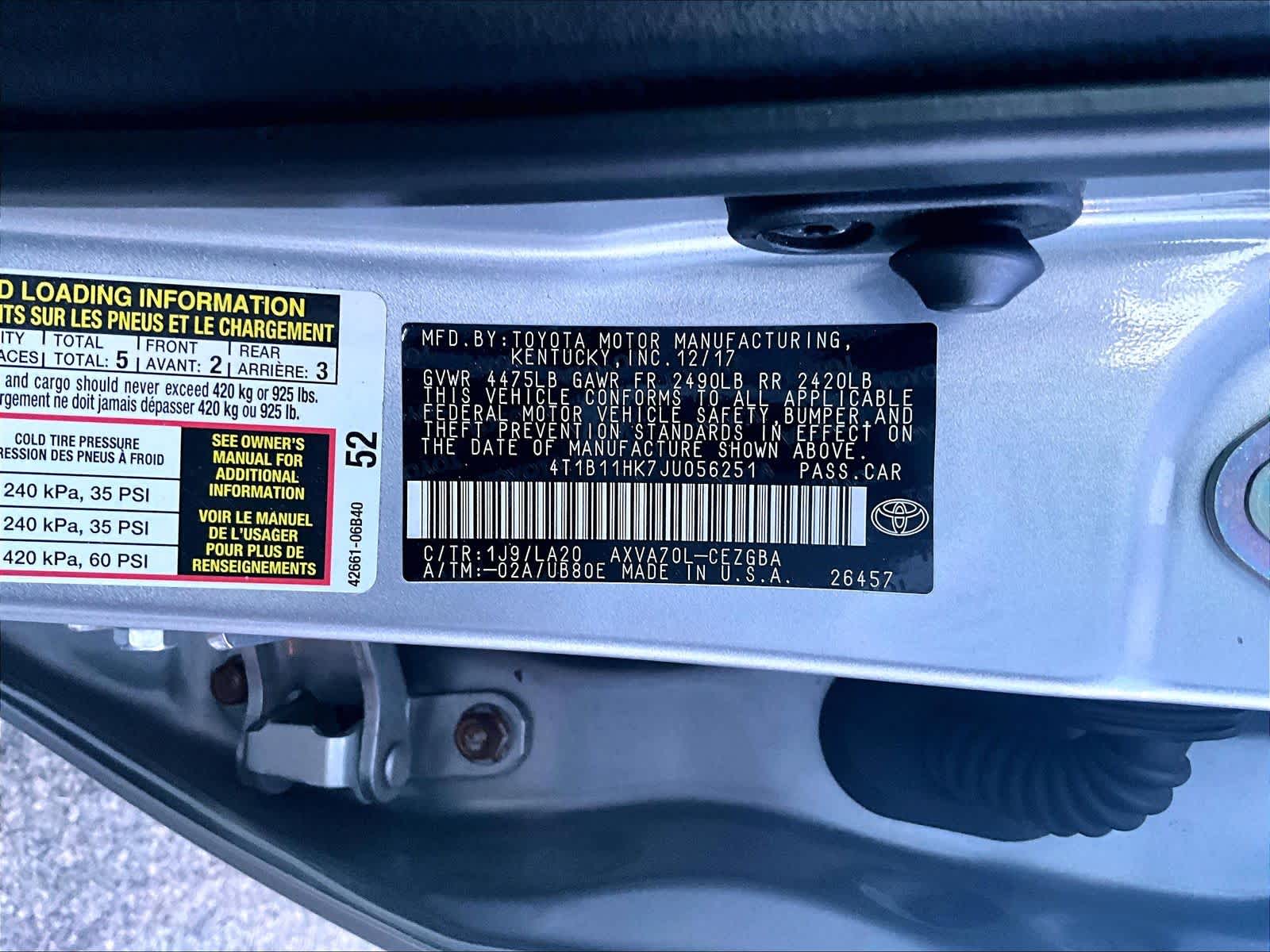 XLE | 59,554 milesStock # N0800124A | VIN # 4T1B11HK7JU056251