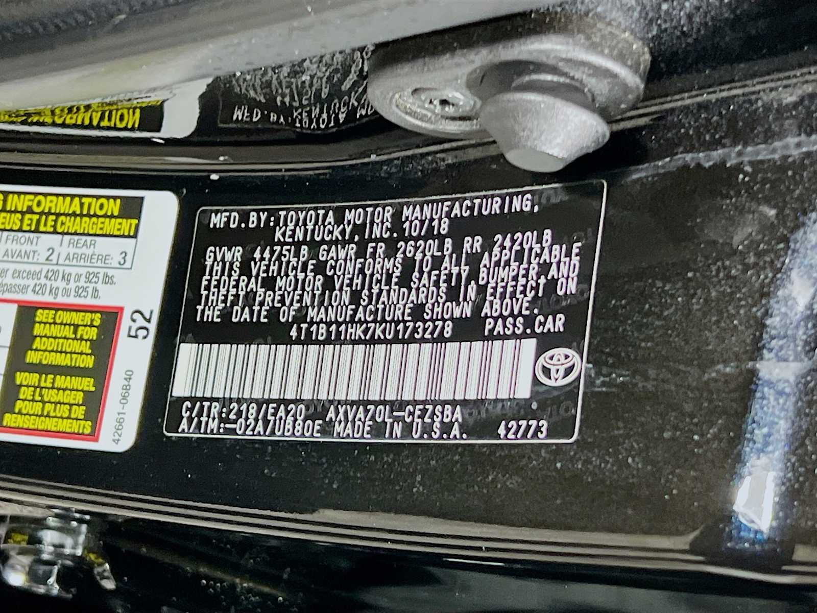 SE | 79,330 milesStock # 60809A | VIN # 4T1B11HK7KU173278
