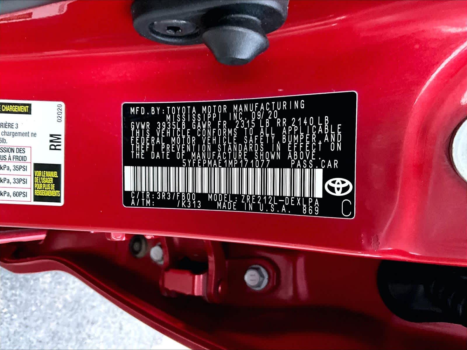 LE | 32,916 milesStock # U0800159 | VIN # 5YFEPMAE1MP171077