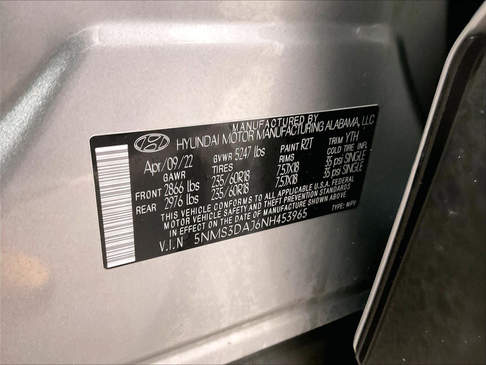SEL | 33,311 milesStock # HY251070A | VIN # 5NMS3DAJ6NH453965