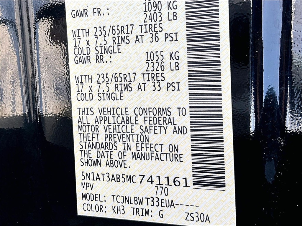S | 72,216 milesStock # U2100585A | VIN # 5N1AT3AB5MC741161