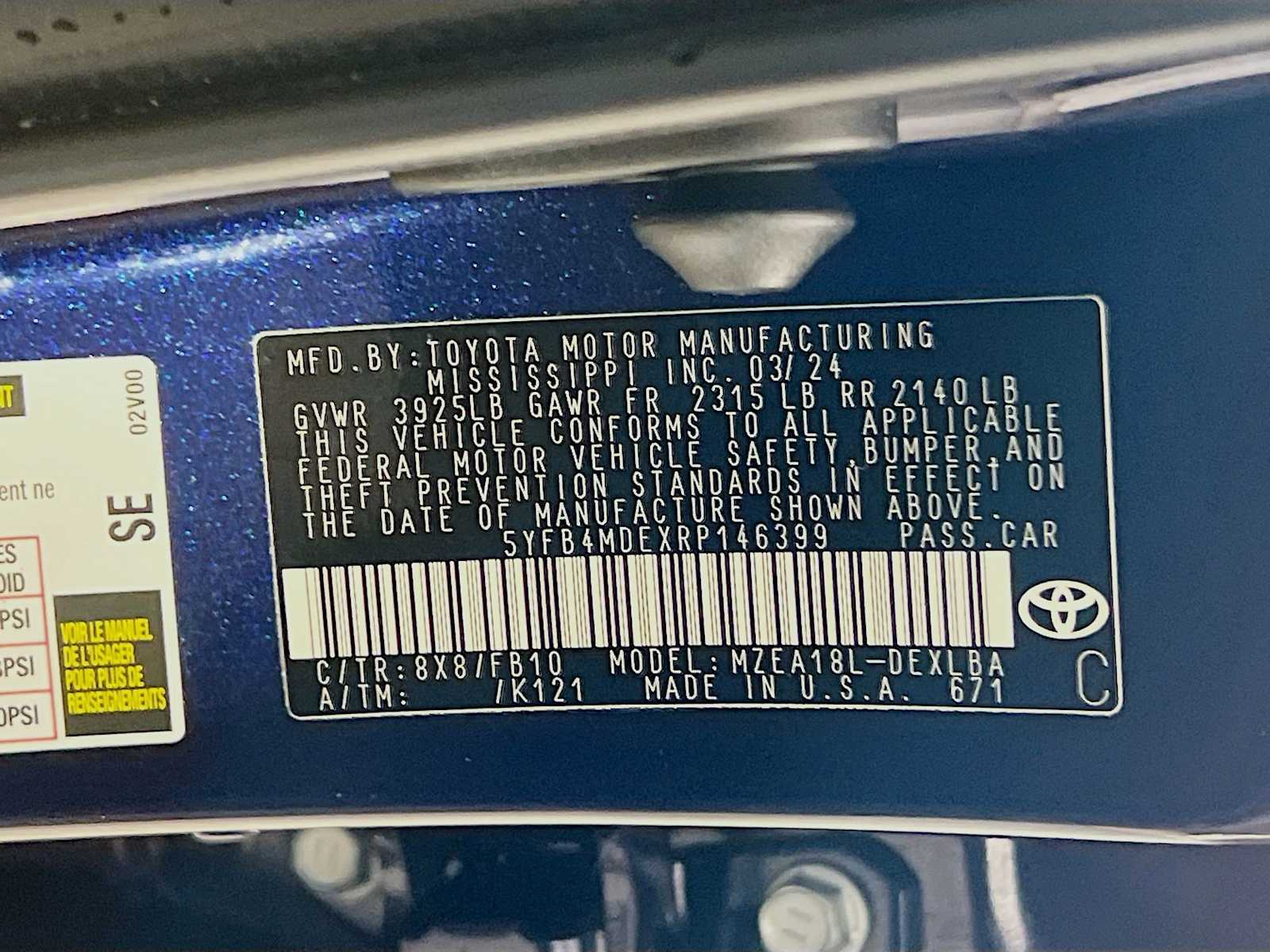 LE | 16,228 milesStock # R958 | VIN # 5YFB4MDEXRP146399