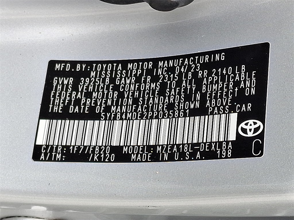 LE | 19,139 milesStock # AN1314A | VIN # 5YFB4MDE2PP035861