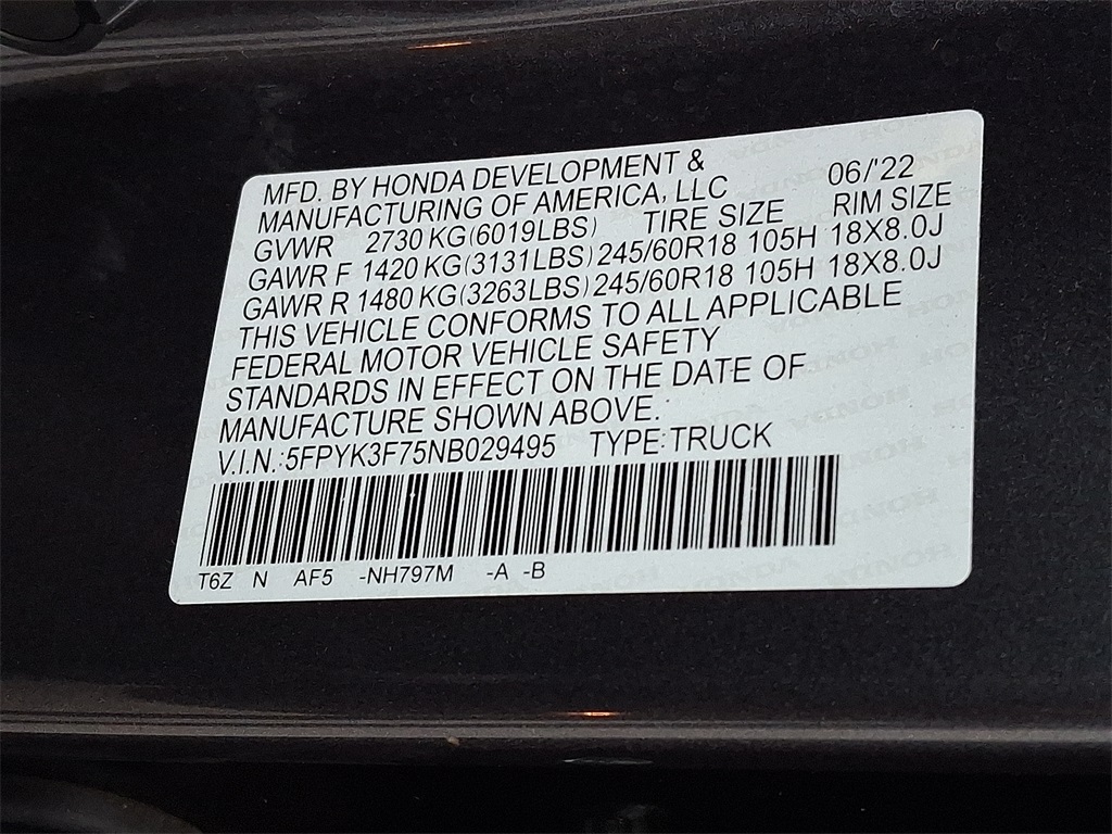 RTL-E | 29,582 milesStock # PUN618 | VIN # 5FPYK3F75NB029495