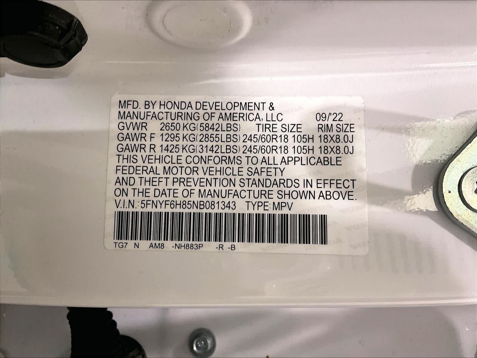 TrailSport | 37,576 milesStock # N0500183A | VIN # 5FNYF6H85NB081343