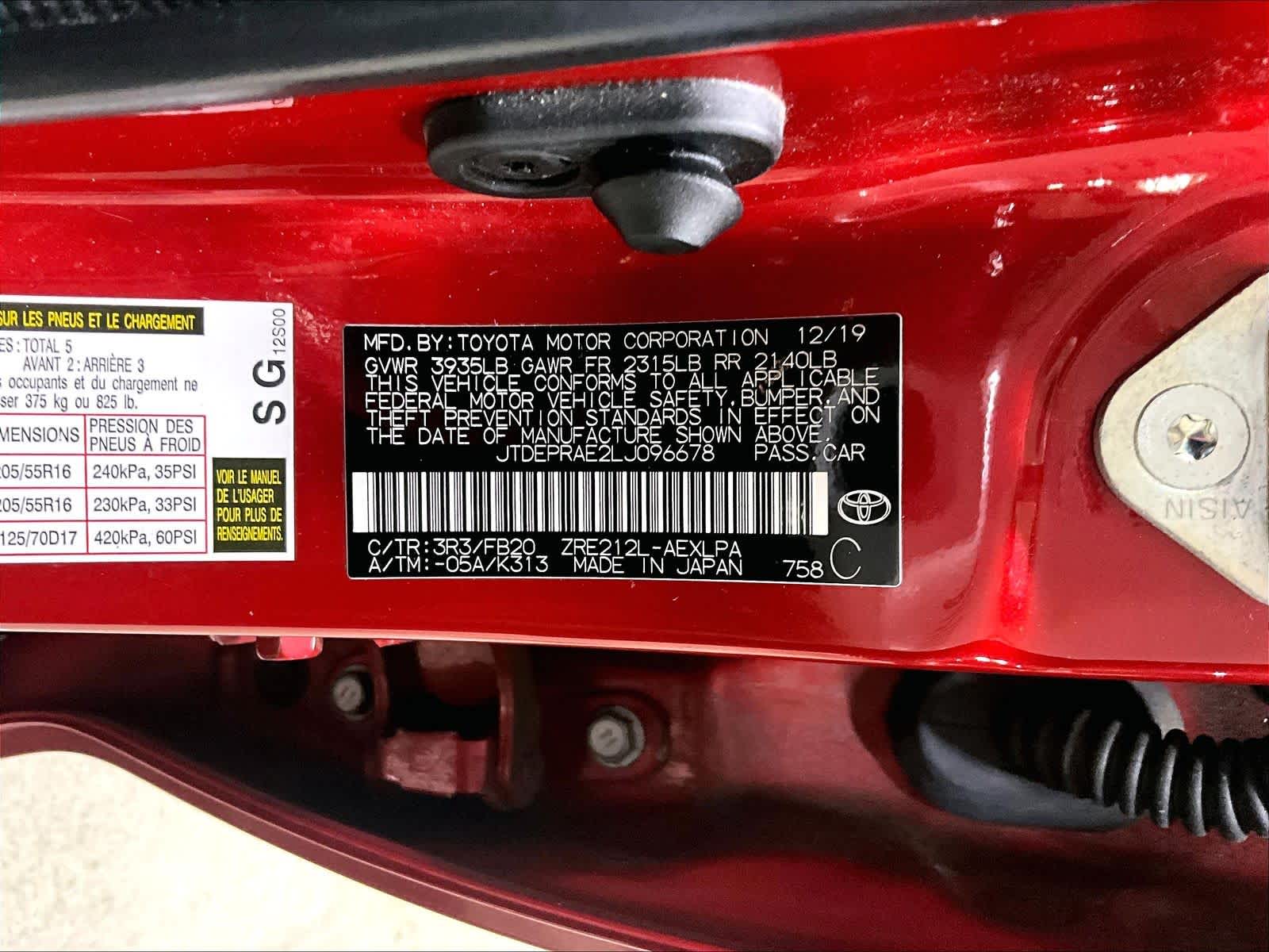 LE | 107,936 milesStock # N0300453A | VIN # JTDEPRAE2LJ096678