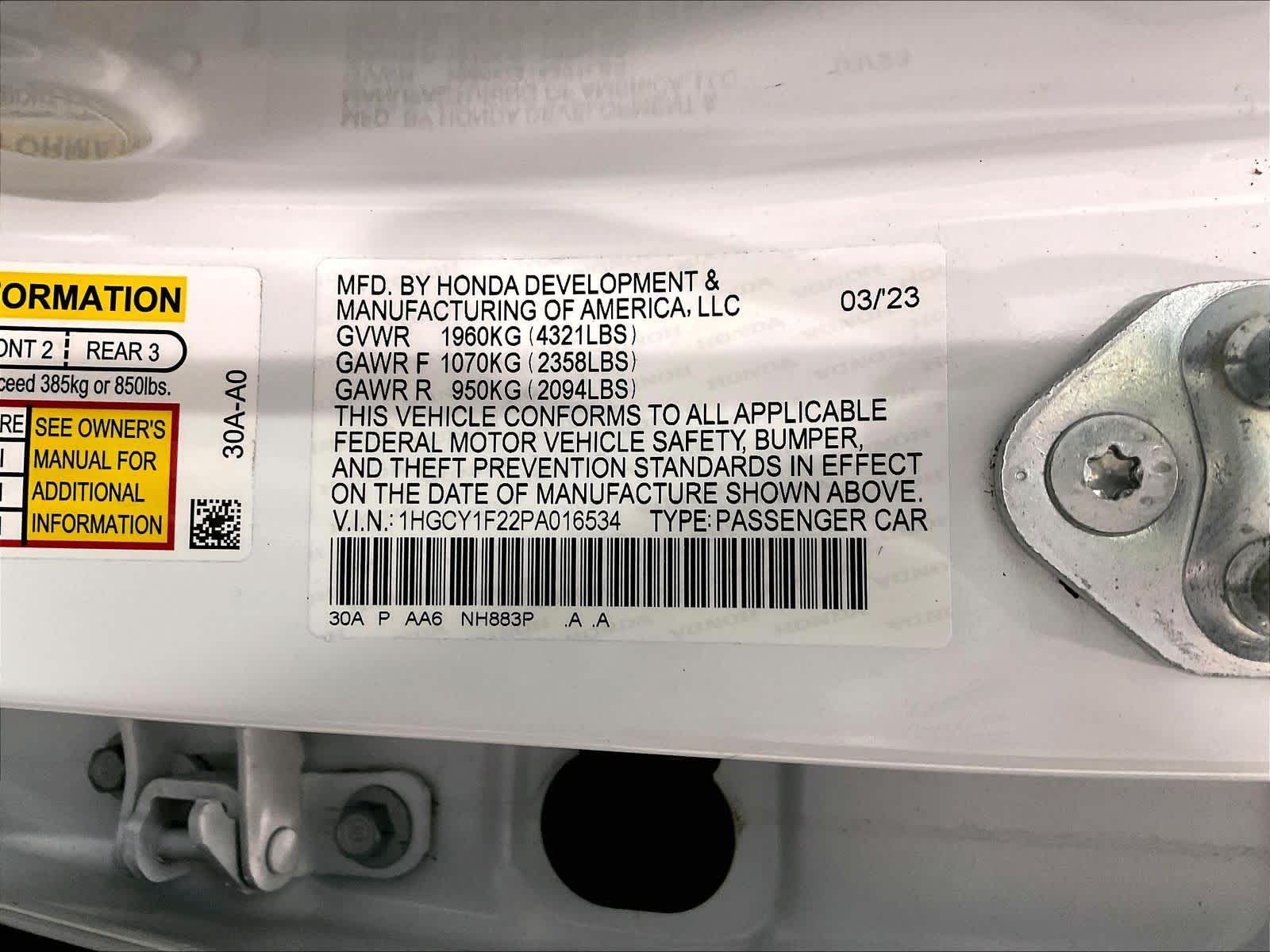 LX | 21,441 milesStock # N0900570A | VIN # 1HGCY1F22PA016534