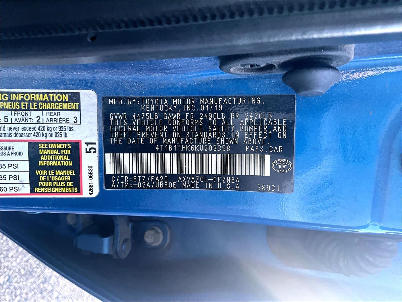 LE | 57,651 milesStock # N0300932A | VIN # 4T1B11HK6KU208358