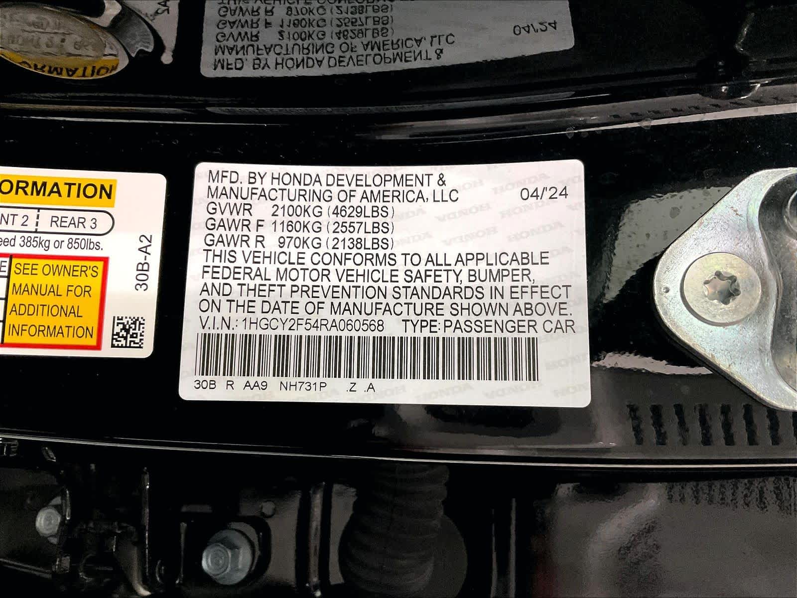 Sport | 16,730 milesStock # N0500569A | VIN # 1HGCY2F54RA060568
