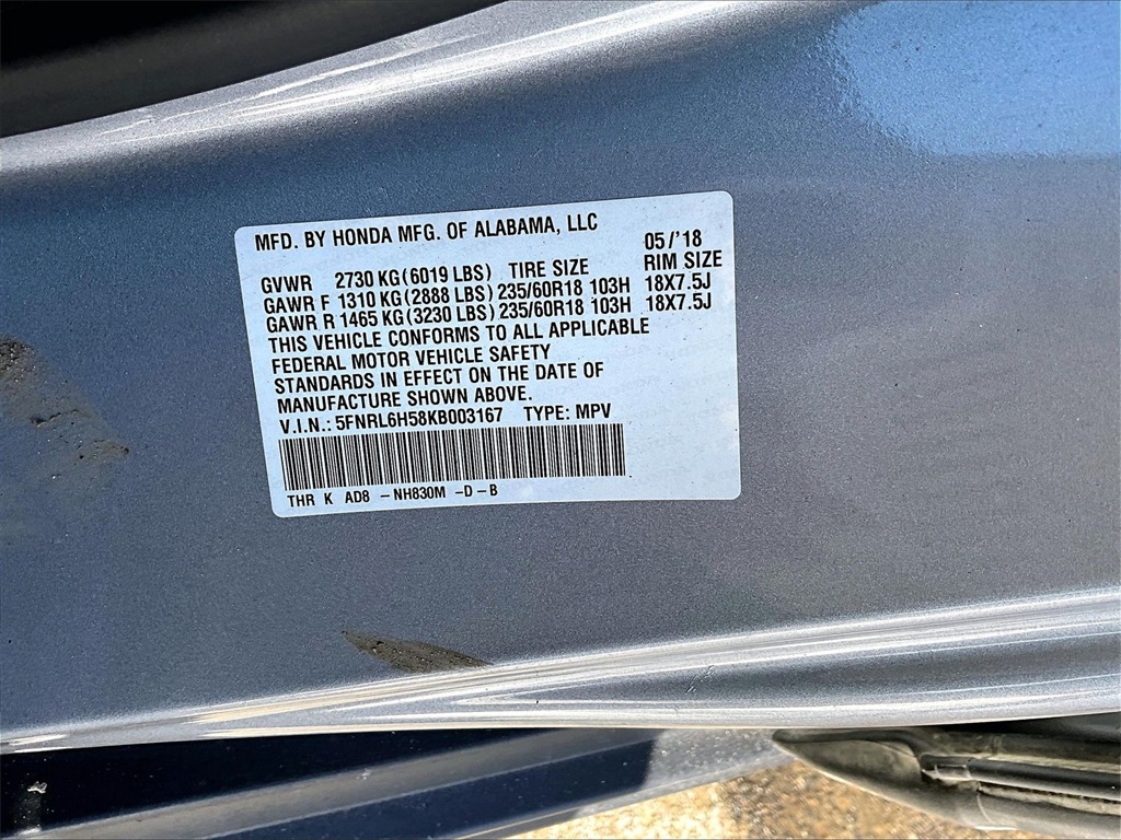 EX | 71,553 milesStock # U2100496A | VIN # 5FNRL6H58KB003167