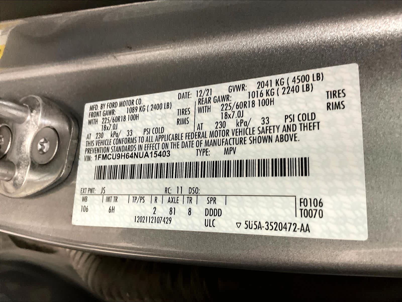 SEL | 39,176 milesStock # U1500255 | VIN # 1FMCU9H64NUA15403