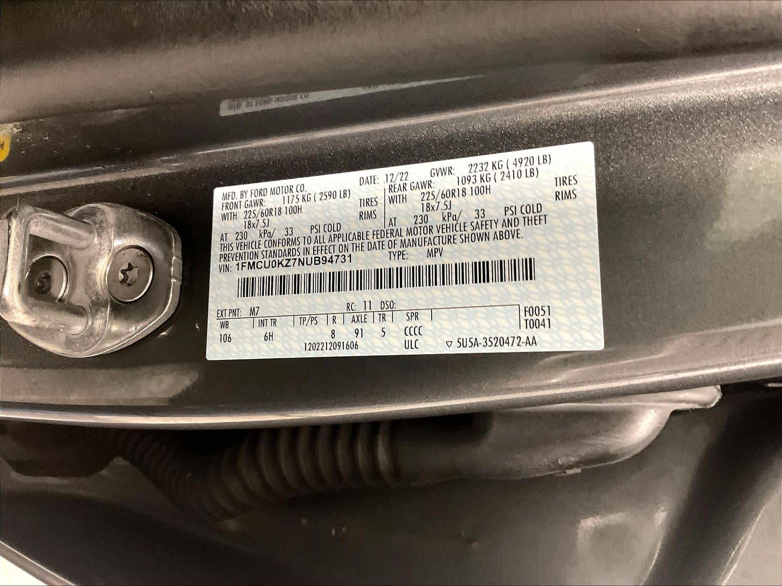 SEL Plug-In Hybrid | 22,465 milesStock # U1500282 | VIN # 1FMCU0KZ7NUB94731