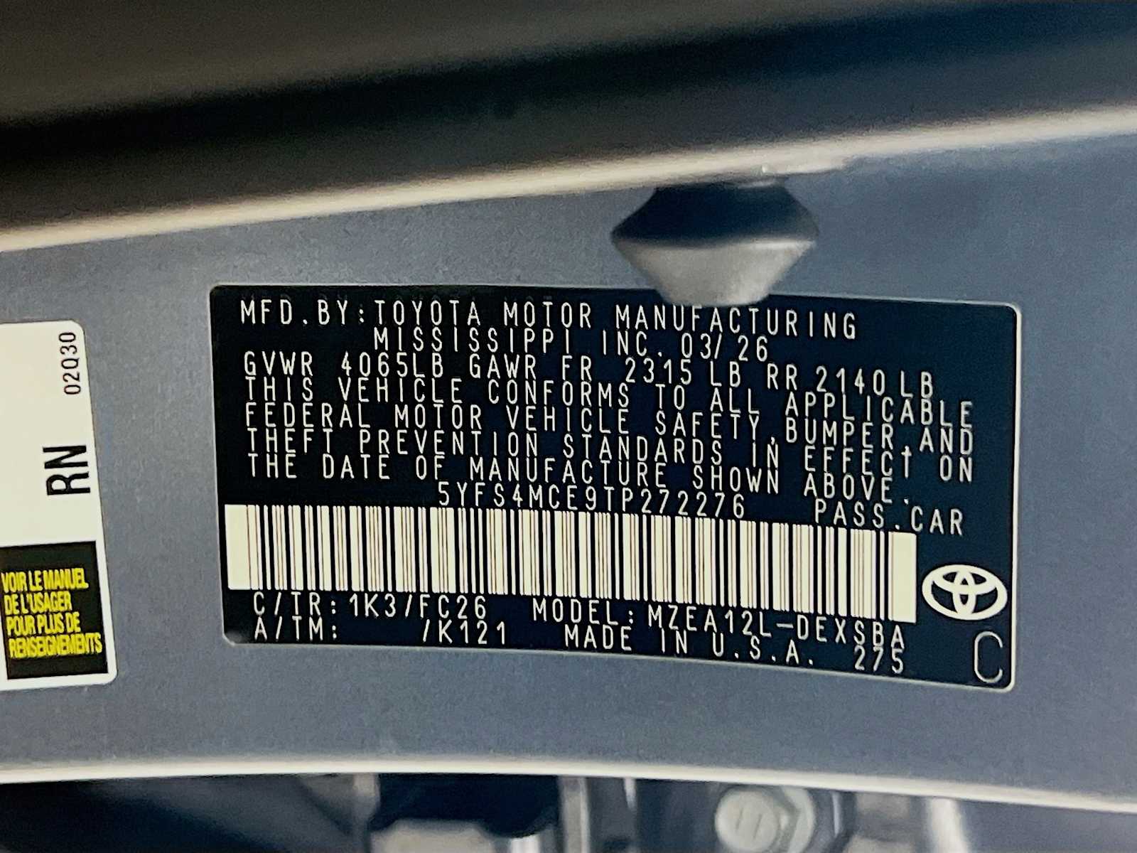 SE | 10 milesStock # 20872 | VIN # 5YFS4MCE9TP272276