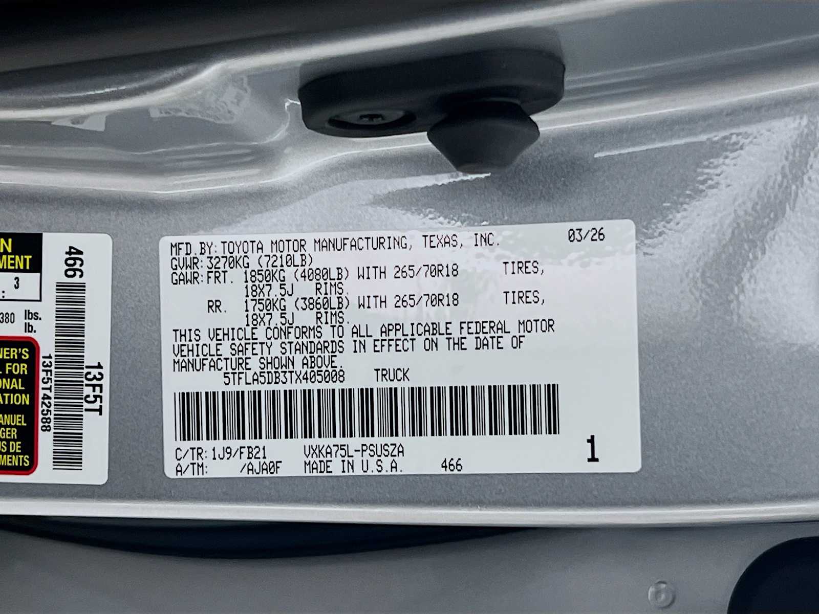 SR5 | 10 milesStock # 21007 | VIN # 5TFLA5DB3TX405008