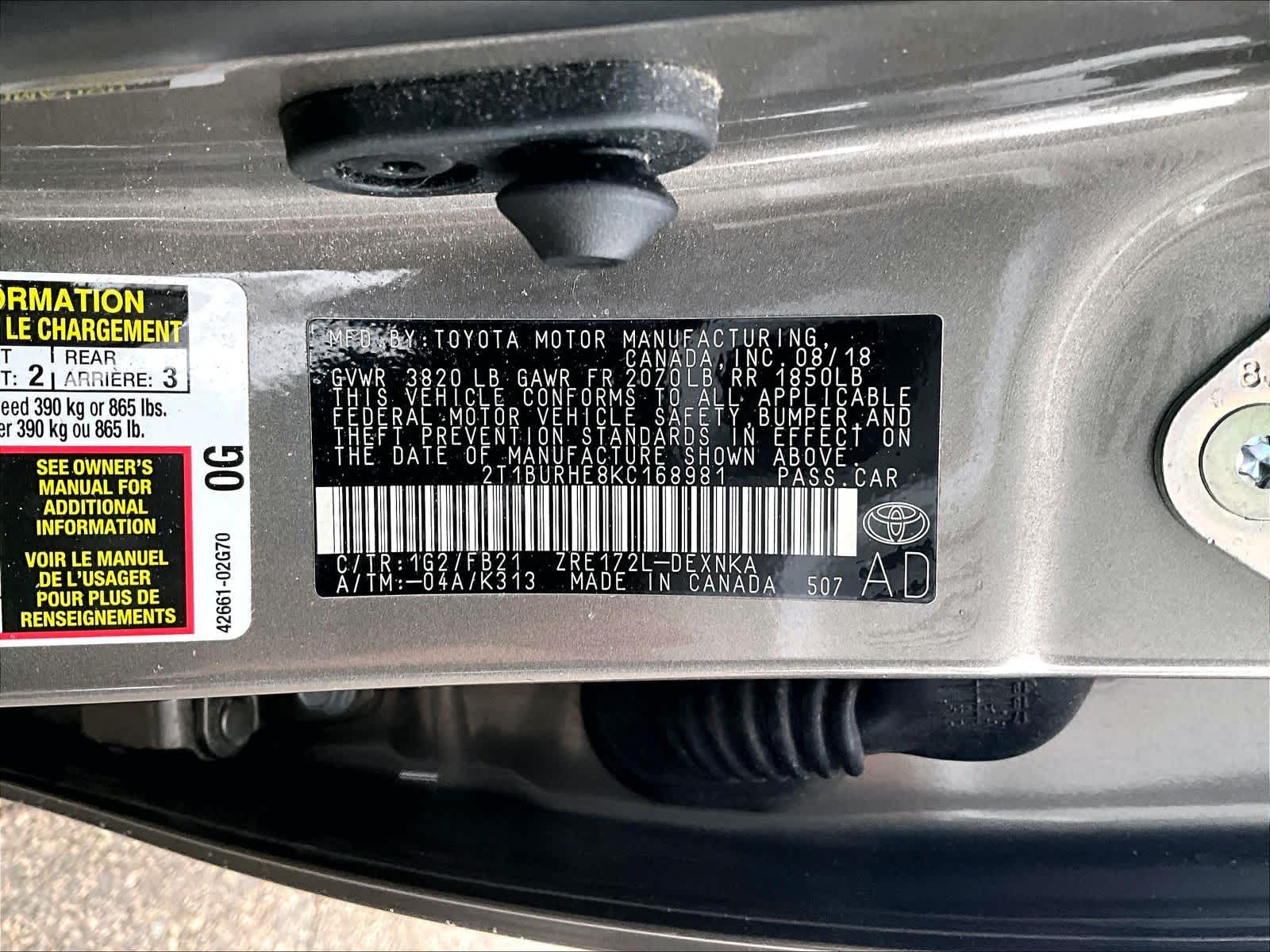 LE | 29,564 milesStock # U0300369 | VIN # 2T1BURHE8KC168981