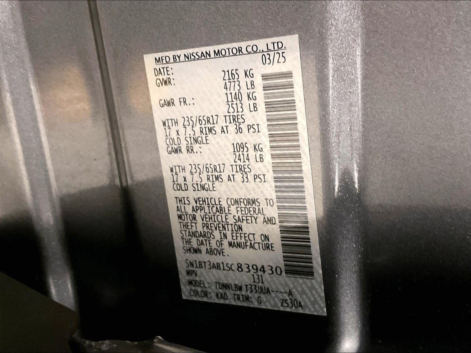 S | 3,346 milesStock # U1200286 | VIN # 5N1BT3AB1SC839430