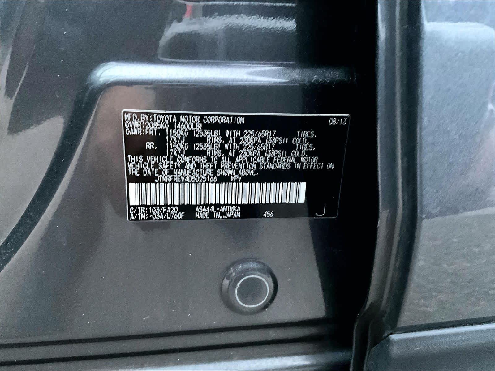 XLE | 112,404 milesStock # N0300892B | VIN # JTMRFREV4D5025166
