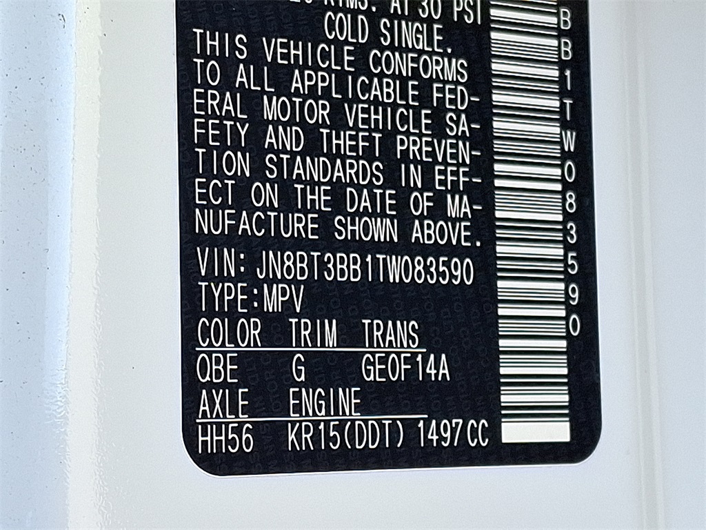 SV | 10 milesStock # AN1226 | VIN # JN8BT3BB1TW083590