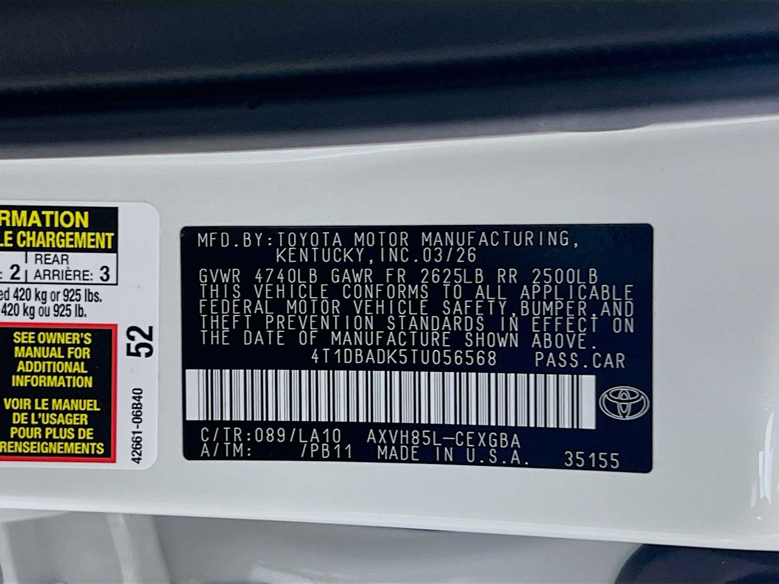 XLE | 10 milesStock # 21081 | VIN # 4T1DBADK5TU056568