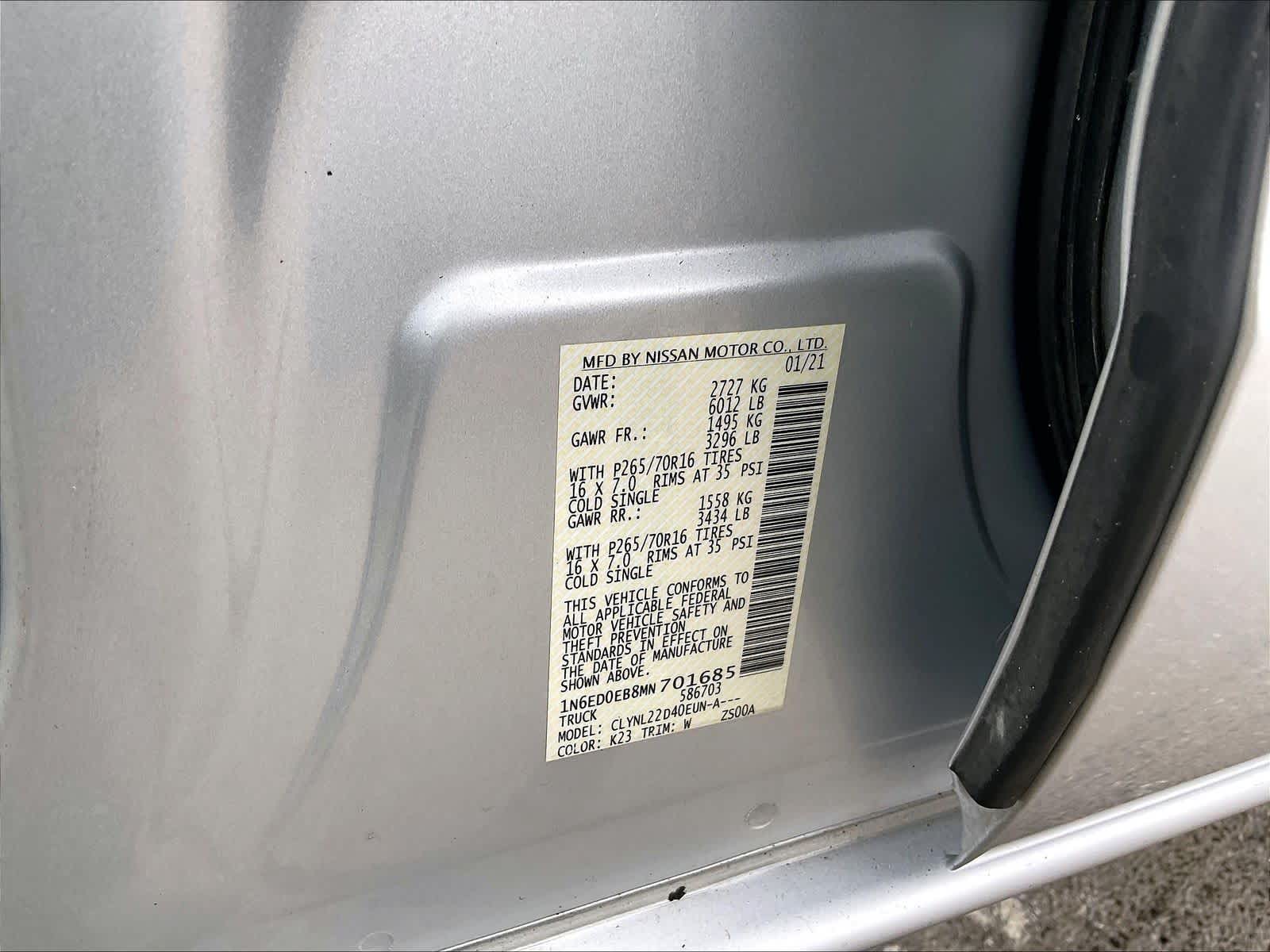 SV | 82,533 milesStock # U1300217 | VIN # 1N6ED0EB8MN701685