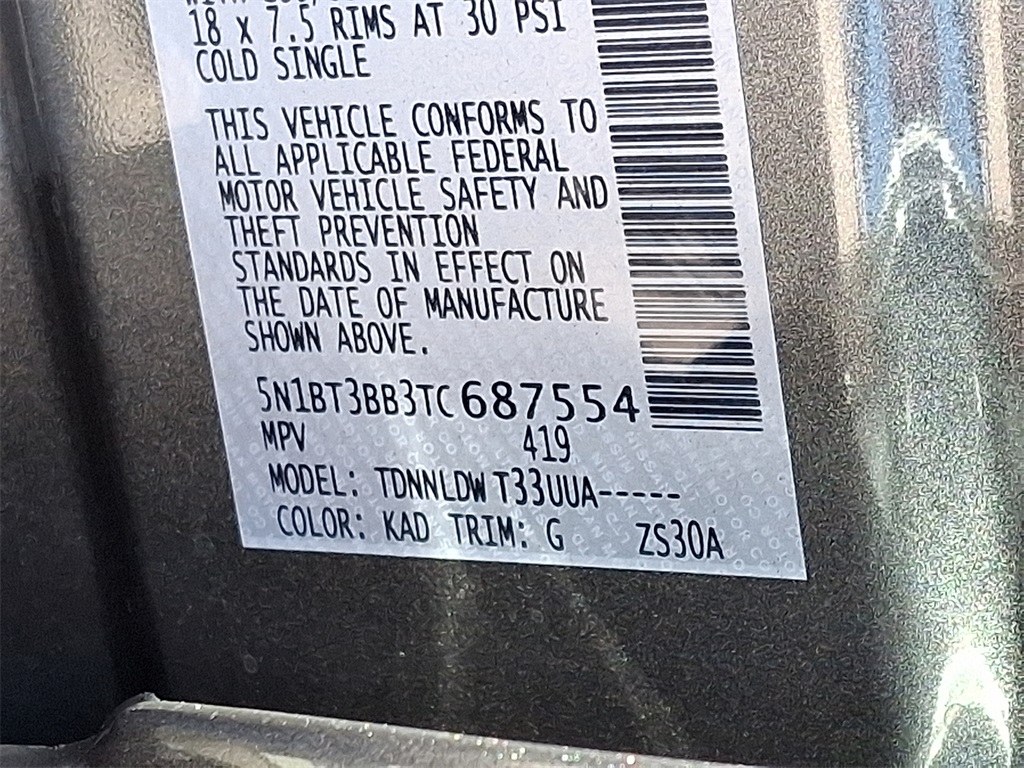 SV | 10 milesStock # AN1142 | VIN # 5N1BT3BB3TC687554