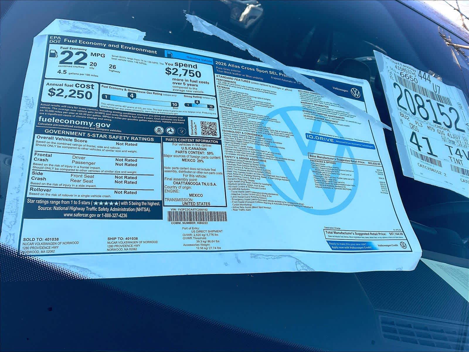 2.0T SEL Premium R-Line | 7 milesStock # N2400049 | VIN # 1V2FC2CA5TC208152