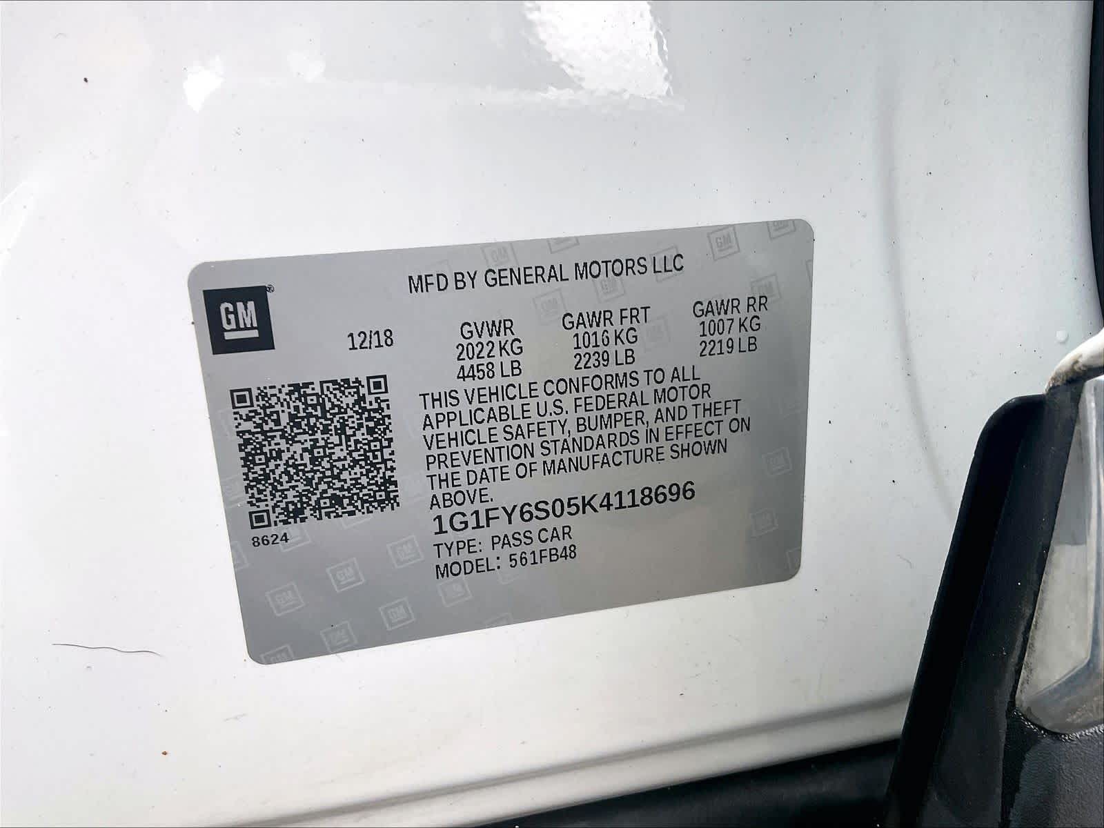 LT | 27,560 milesStock # U1200112 | VIN # 1G1FY6S05K4118696