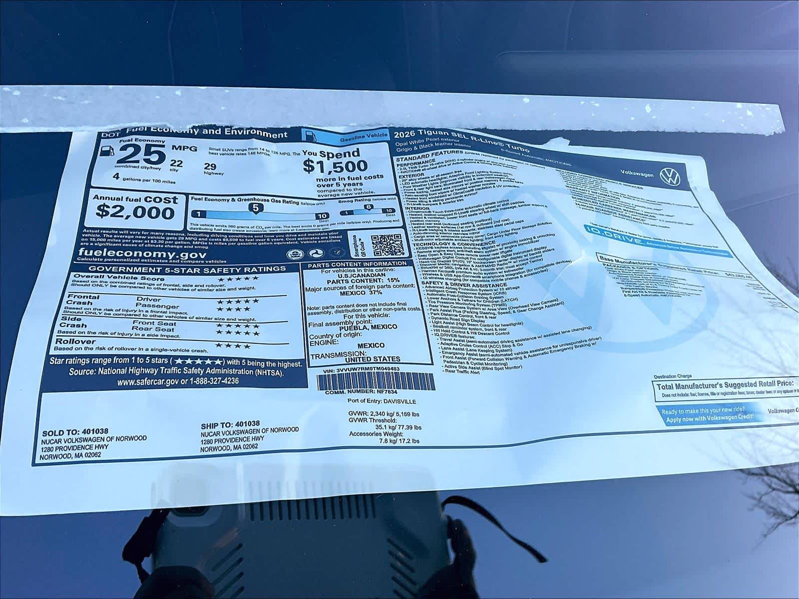 Available atNucar Volkswagen of Norwood1280 Boston Providence HighwayNorwood, MA 02062(781) 590-1643