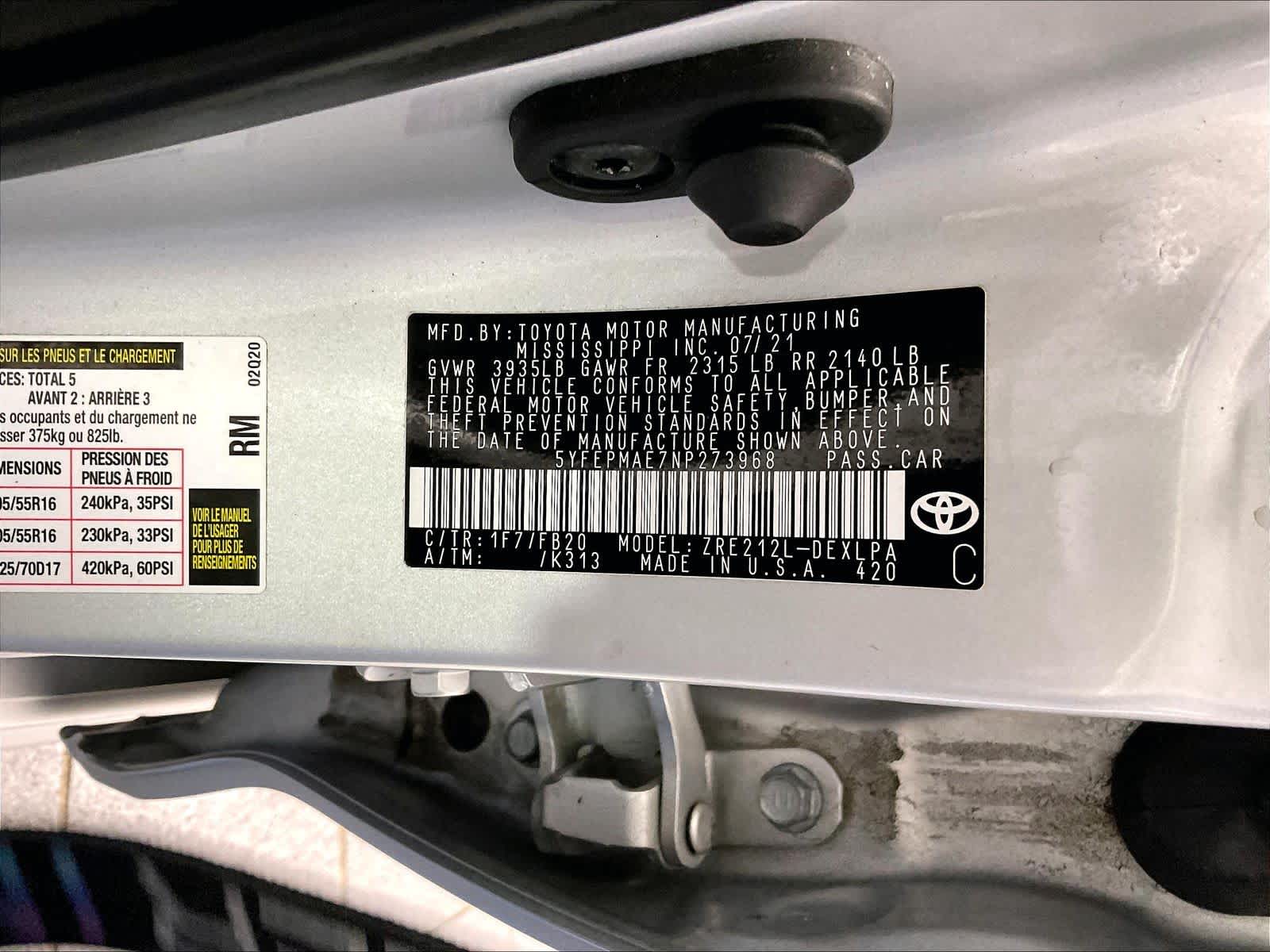 LE | 48,032 milesStock # U0300881 | VIN # 5YFEPMAE7NP273968