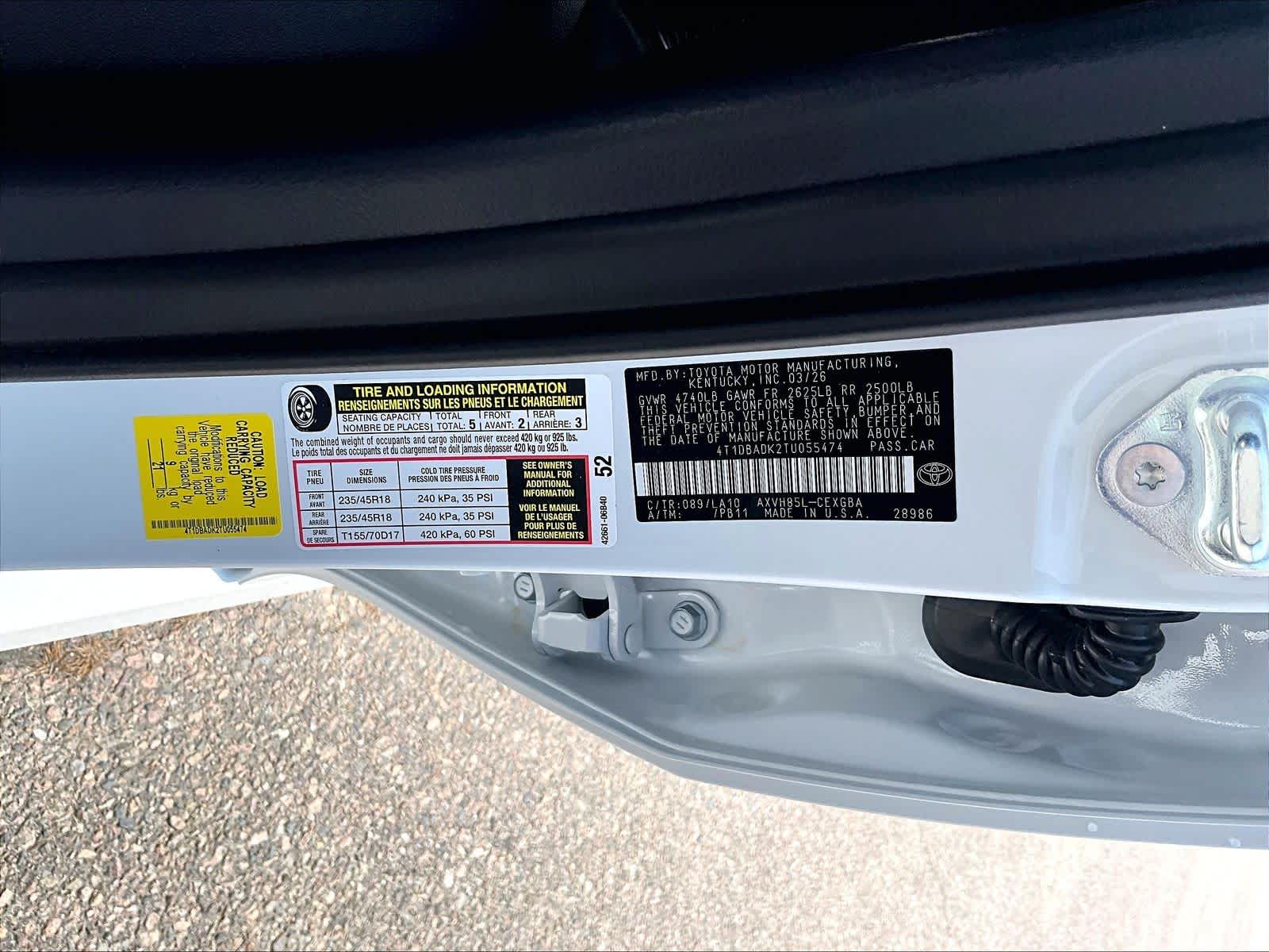 XLE | 5 milesStock # N0301356 | VIN # 4T1DBADK2TU055474