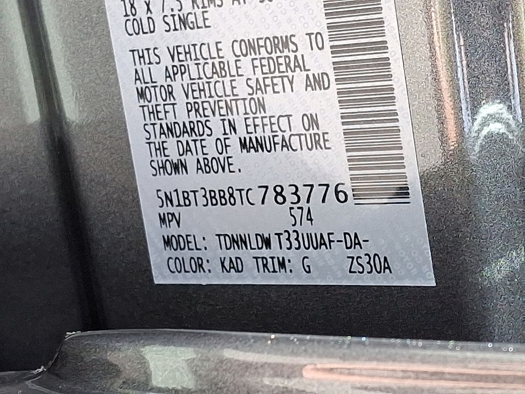 SV | 10 milesStock # AN1738 | VIN # 5N1BT3BB8TC783776