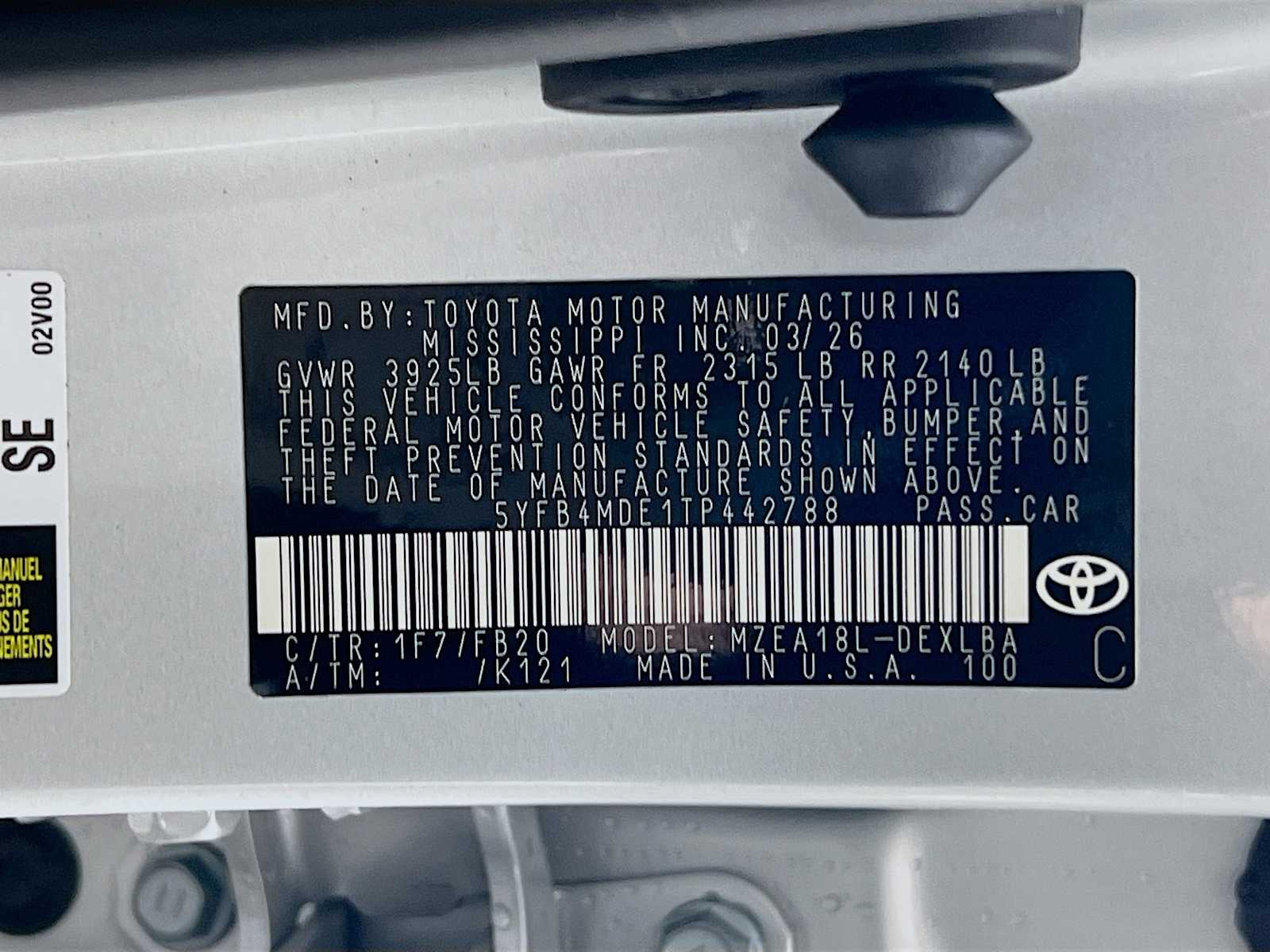 LE | 10 milesStock # 20984 | VIN # 5YFB4MDE1TP442788