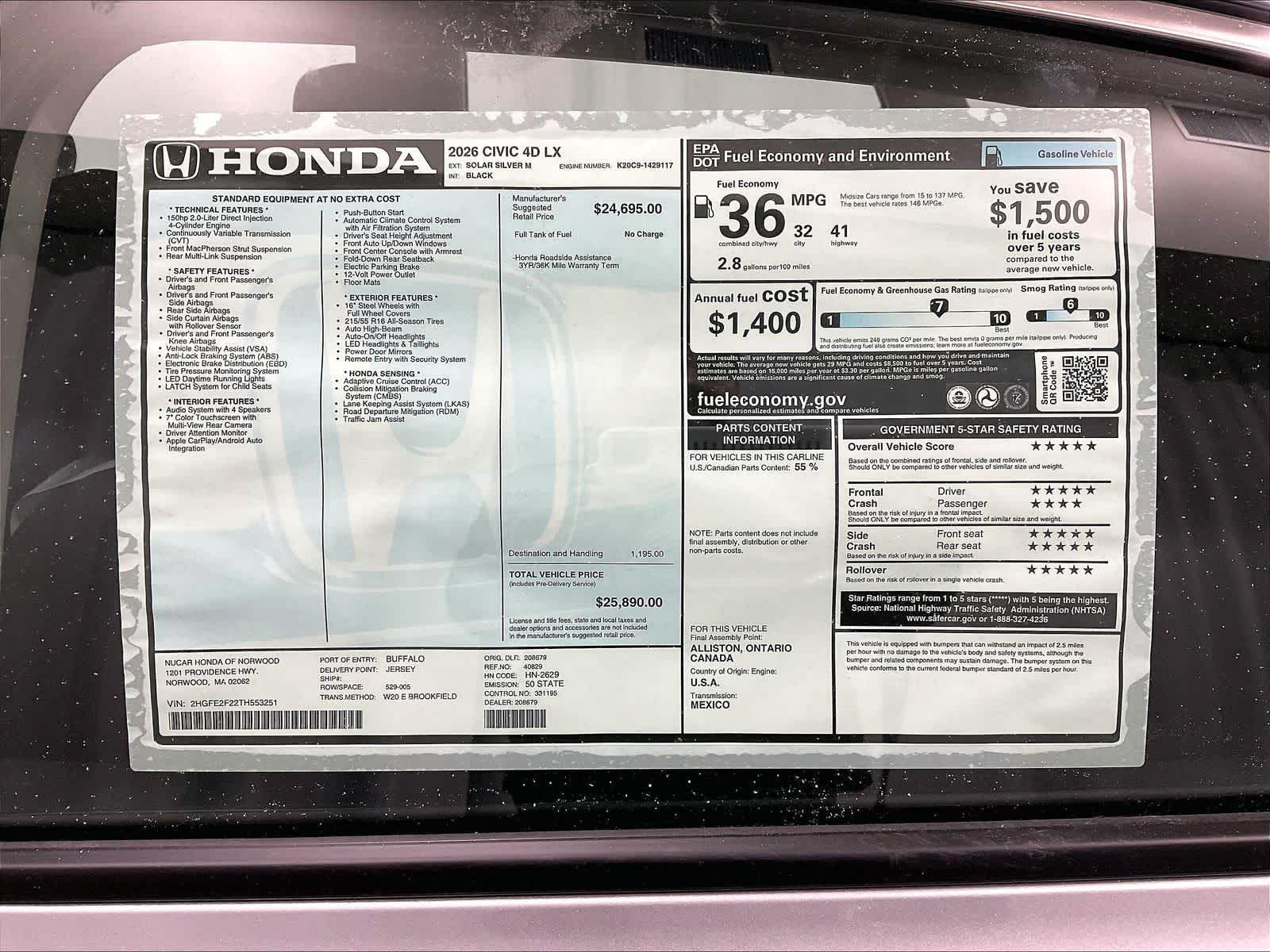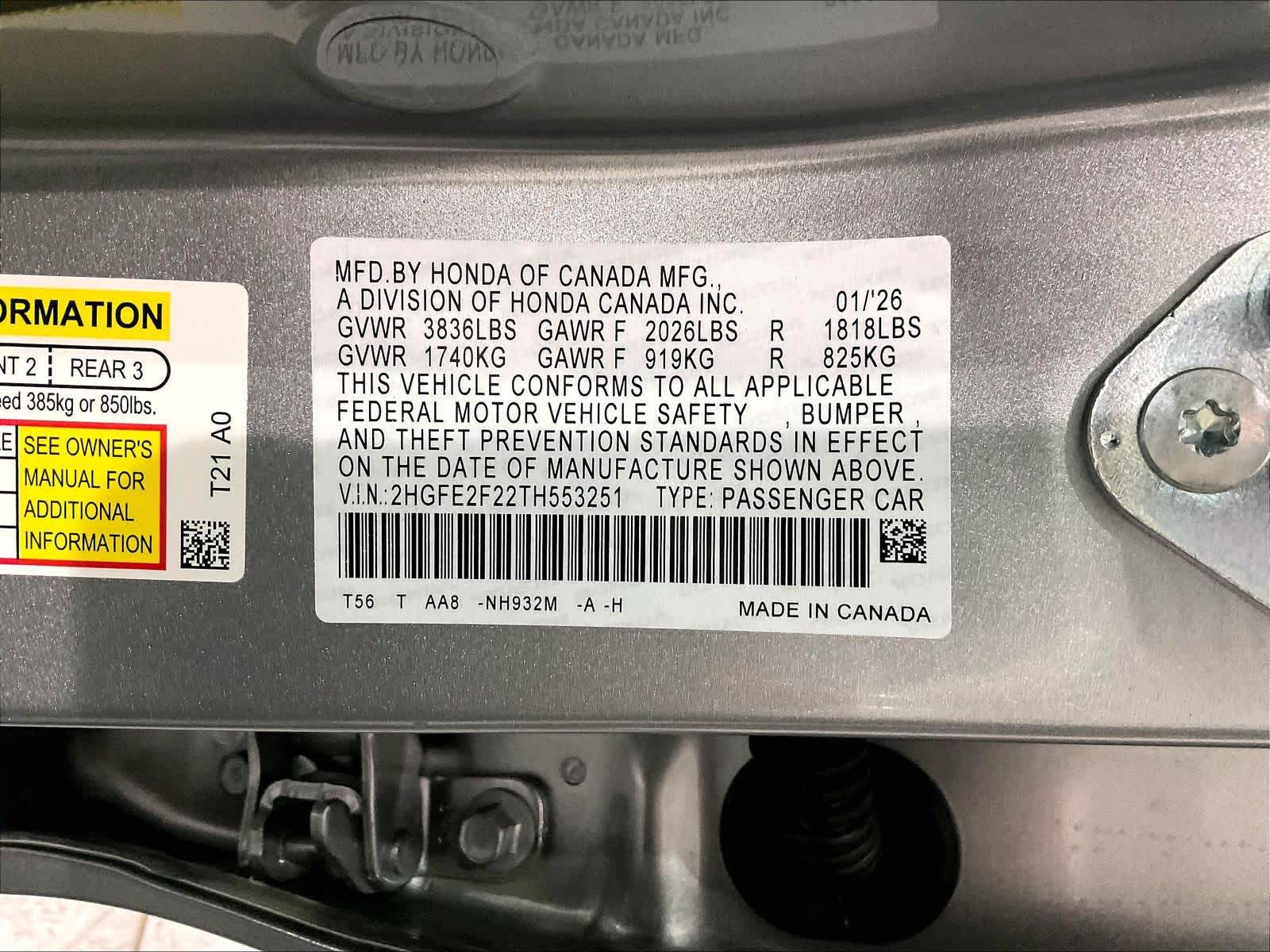 LX | 3 milesStock # N0500402 | VIN # 2HGFE2F22TH553251
