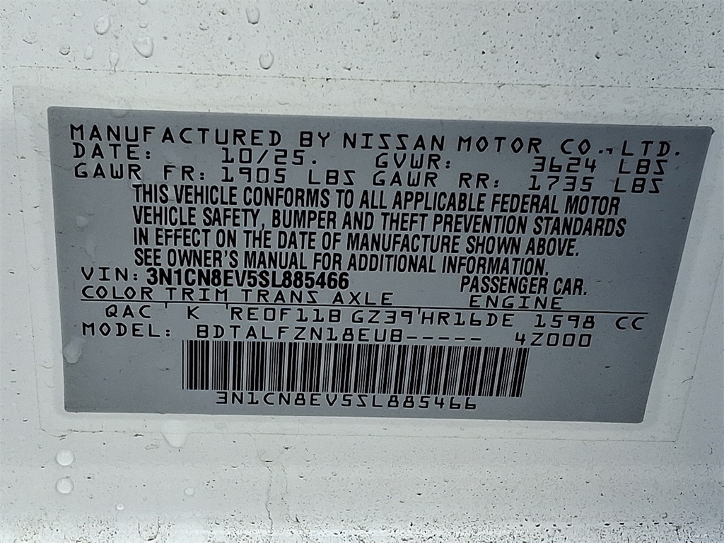1.6 SV | 10 milesStock # AN1469 | VIN # 3N1CN8EV5SL885466