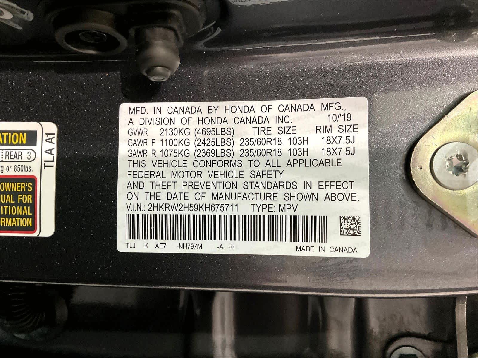 EX | 50,750 milesStock # N0500537A | VIN # 2HKRW2H59KH675711